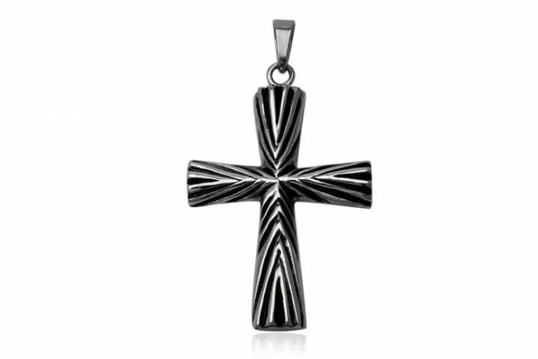 Lækkert design med sort emalje imellem stålet – Kors vedhæng til dig med den fede stil. Korset er med blank stålbagside.