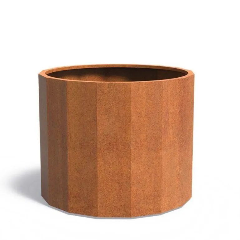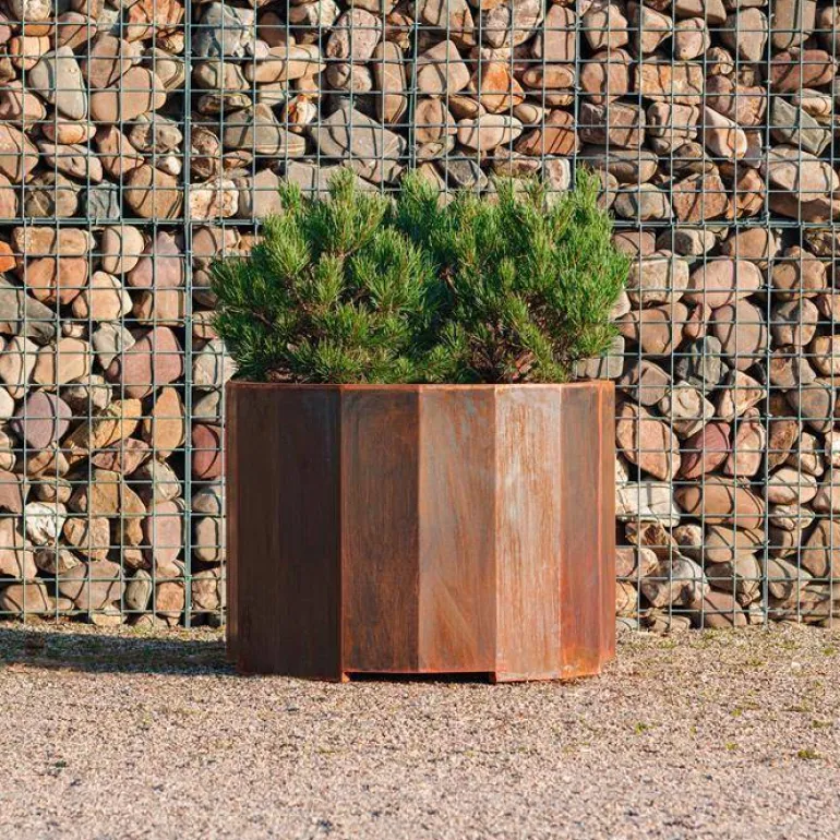 Super flot rund krukke med mange kanter – polygonisk form i 2mm corten stål – 3 størrelser og højder