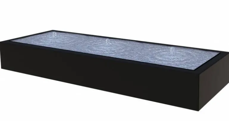 Eksklusive store aflange lave vandfontæner i antrazit aluminium med LED lys og pumper. 5 størrelser