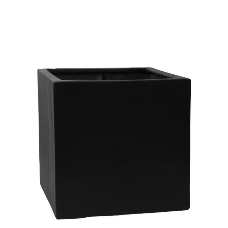 Firkantede udendørs Franoma mat sorte krukker med 5 års garanti – 47x47cm eller 57x57cm