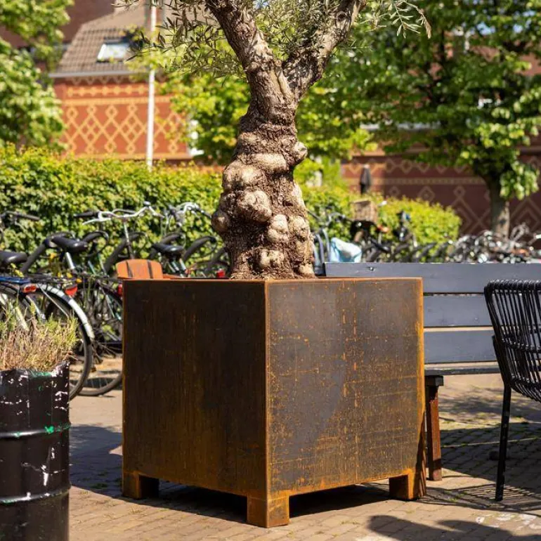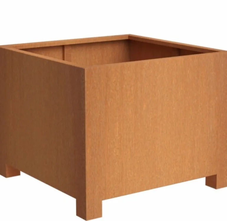 Store firkantede Adezz krukker i stål der ruster med tiden – med 9cm fødder – op til 140x140cm