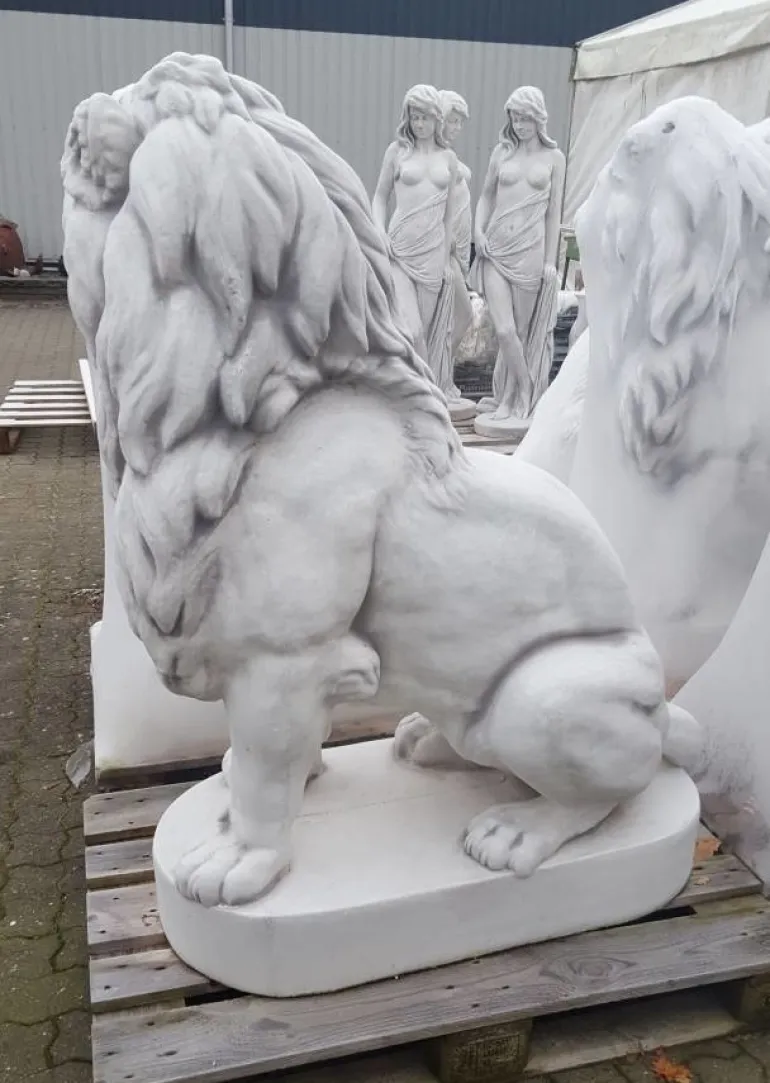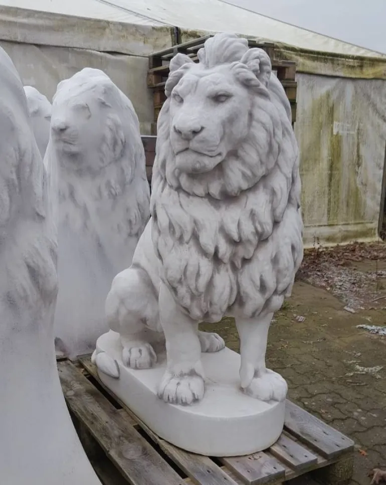 Pompøse og super flotte frostsikre løver i hvid beton/sten på sokkel.