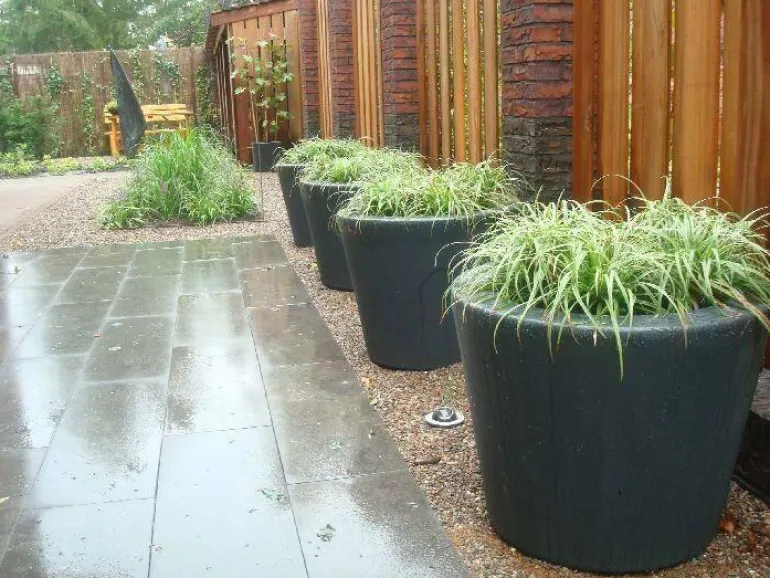 Topkvalitet til store planter og mindre træer. Disse store krukker i RAL7021 antrazit er gennemfarvede i godset og taber derfor ikke farve – derudover med dobbeltbukket kant foroven for ekstra styrke. Krukkerne er frostsikre og i markedets bedste kvalitet af fibreglass/glasfiber/polyester.