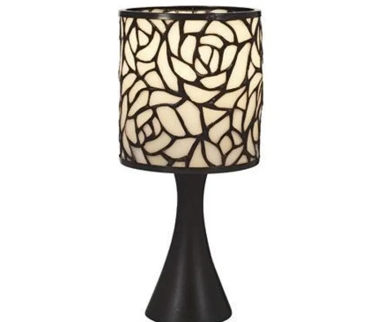 Speciel bordlampe med Amerikansk håndlavet skærm og ægthedscertifikat. Foden på bordlamperne er fajance (keramik) incl sort afbryderledning – rosemotiver i skærmen. Bemærk at skærmene er unikke og varierer fra lampe til lampe.