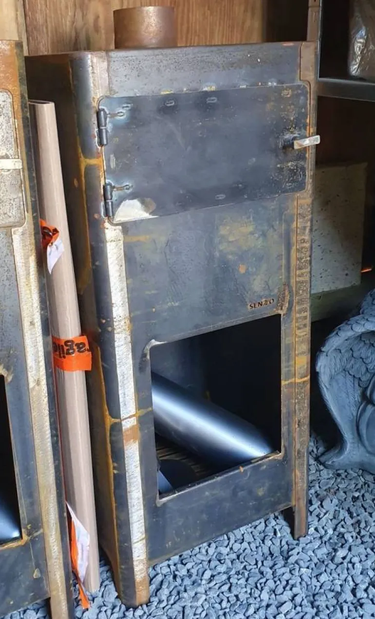 Skorsten H.70cm incl regnhætte / Der er ikke glas i ovnen.