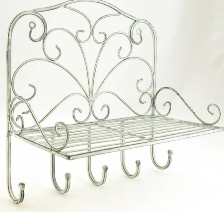 Hvid antik jernhylde til væggen