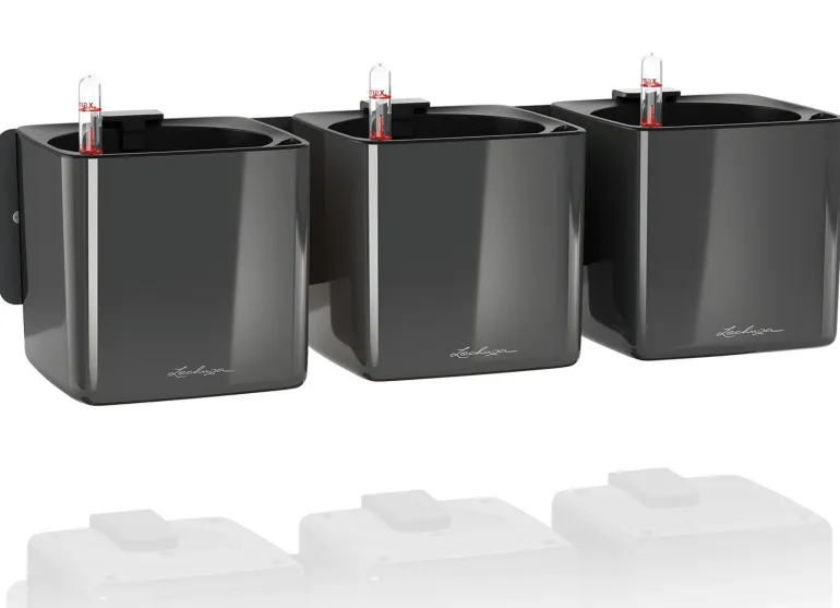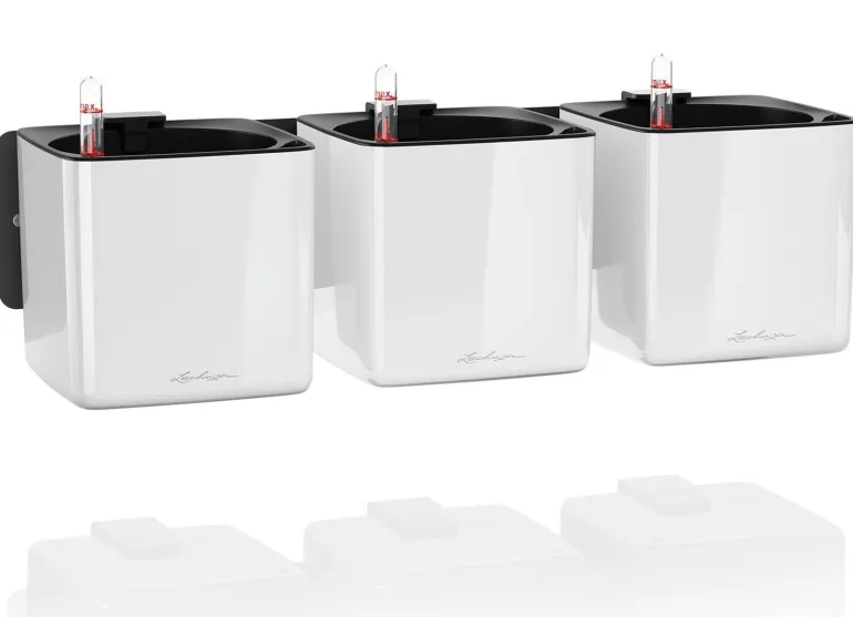 Praktisk og super smart nyhed fra Lechuza – 3stk små potter i højglans med selvvanding og smart ophængs system med magneter. Du kan både montere vægskinnen lodret og vandret som du ønsker. Magneterne clipses på potten og sættes på skinnen.