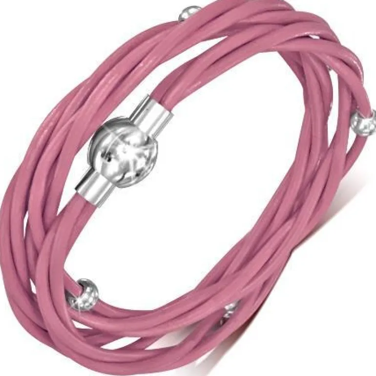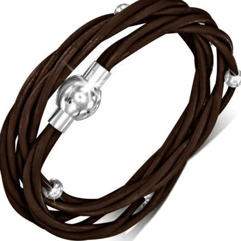 Fedt specielt vikle armbånd eller halskæde med flere strenge ægte indfarvet læder med små stålcharms og magnetlås i 316L rustfri stål.