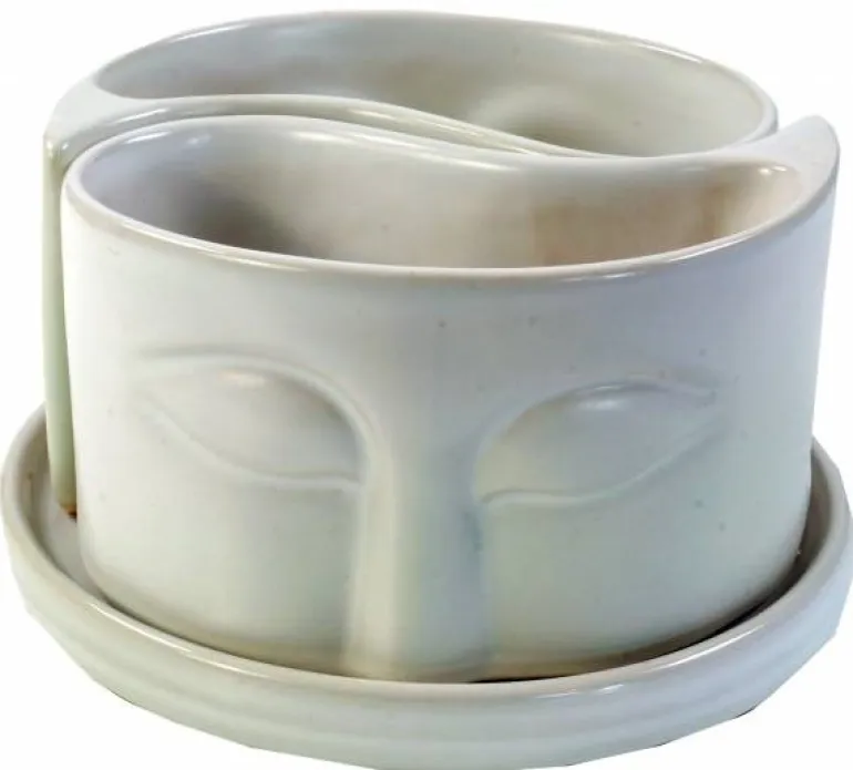 2 skåle med buddha maske implementeret, samlet på én underskål.