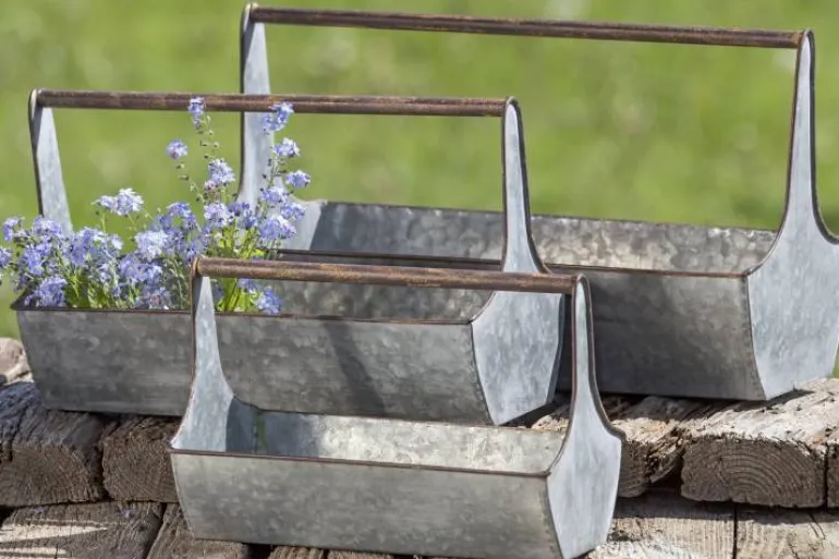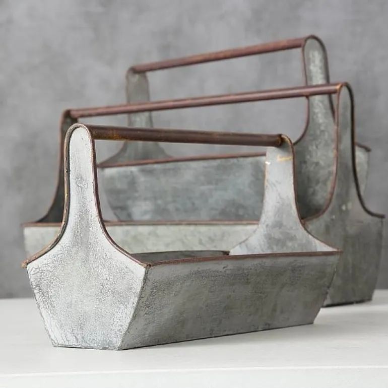 Sæt med 3stk fine rustikke plantepotter / frugtbakker i zink.