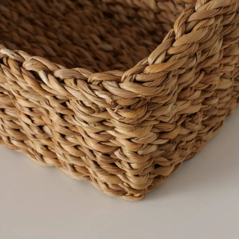 Skønt sæt med 3stk flettede kurve i søgræs med hvidt bomuldsstof – de 3 kurve har base i medfølgende søgræsholder.