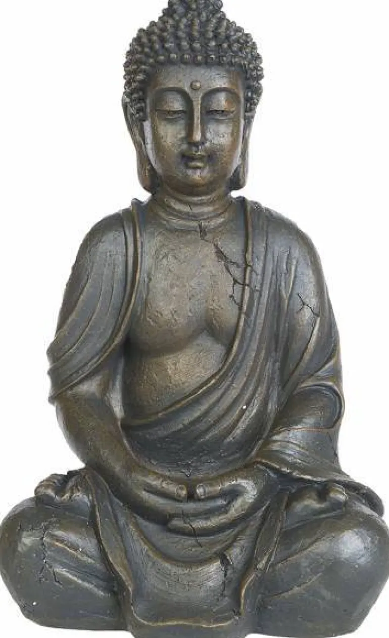 Flot Buddha med klæde i mørkbrun antik – holdbar polystone materiale.