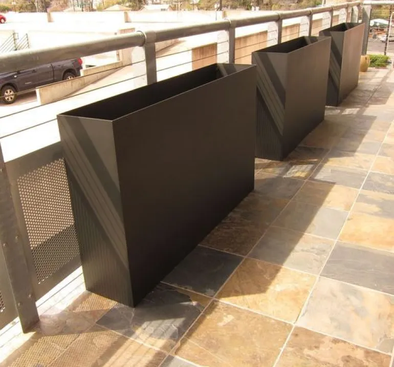 Eksklusiv i enkel og moderne look. Leveres uden bundhul og med 15mm fødder så de er let hævet fra terræn. 3mm aluminium som først er grundig primet og derefter pulverlakeret i RAL7021/Antrazit/Mat. Øverste kant er dobbeltbukket for ekstra styrke.