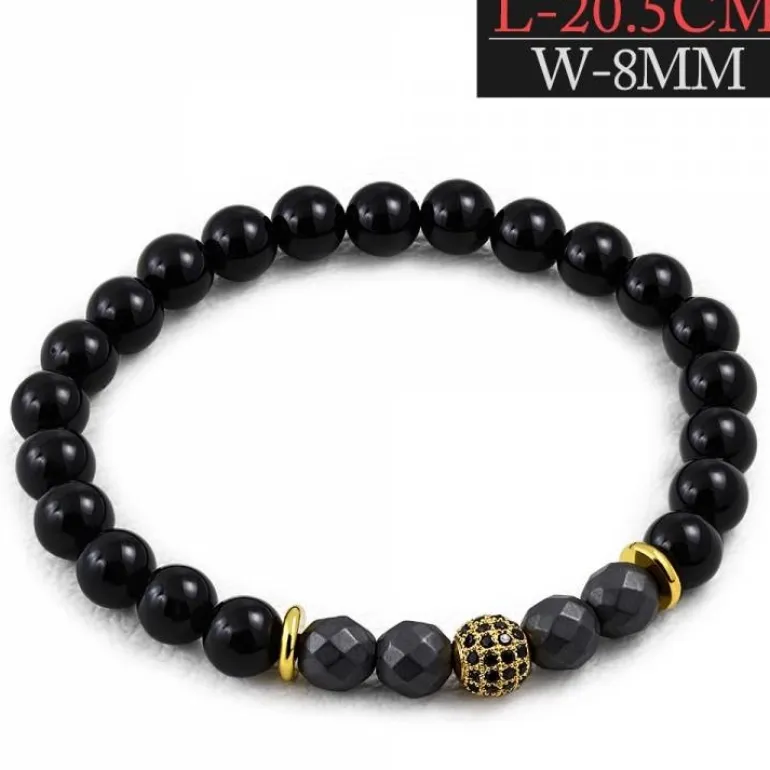 Elastisk strækarmbånd med 8mm sorte agat kugler