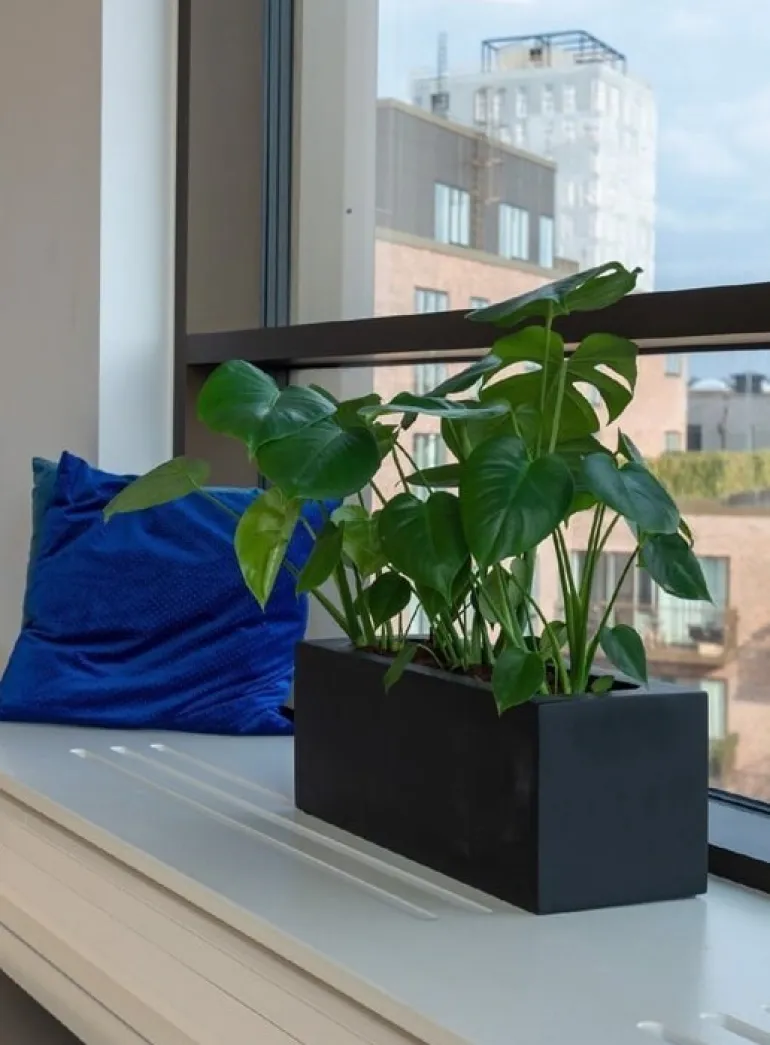 Plantekasse i sort mat eller grå mat fiberstone til vinduer