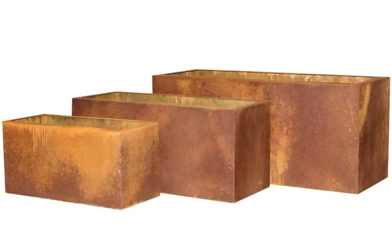 Aflange plantekummer i corten stål som kommer med rust på – 3 str
