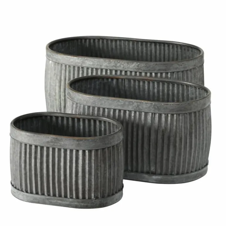 Store aflange smalle Dalia plantekrukker i metal med zink look – sæt 3stk i “foldet look”