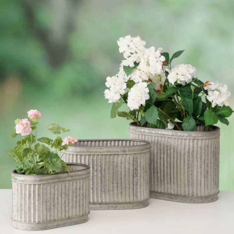 Flotte Estelle zinkpotter med riflet overflade til planter, krydderurter og blomster – 3 stk