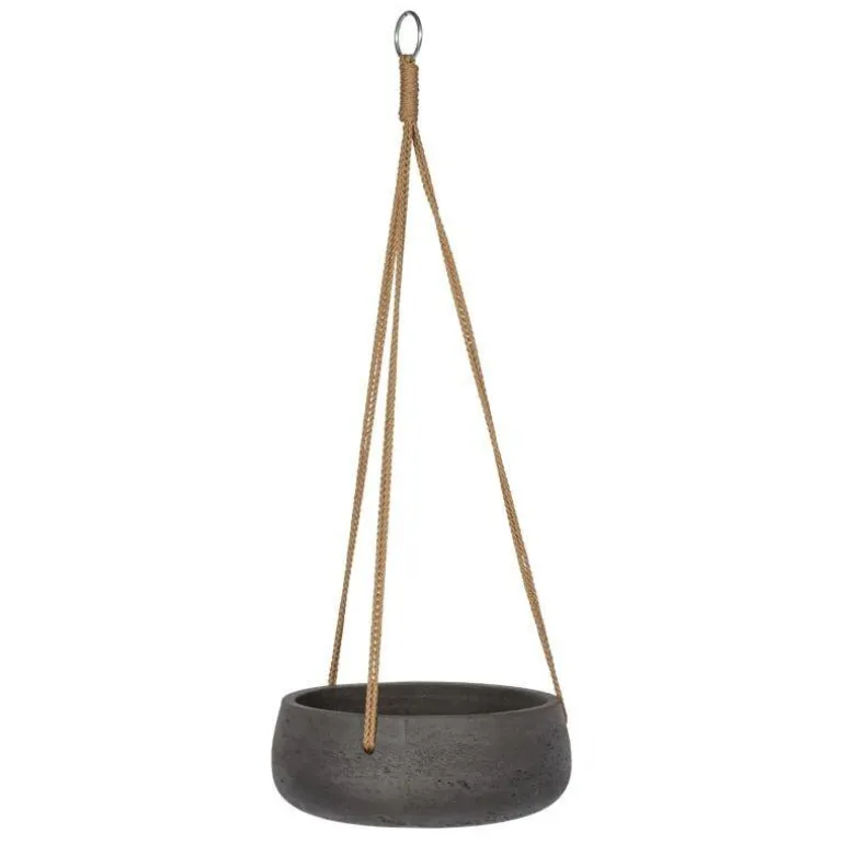 Flot matsort eller sandgrå hængeampel med flettet tovværk – lavet i fiberclay og er vandtæt