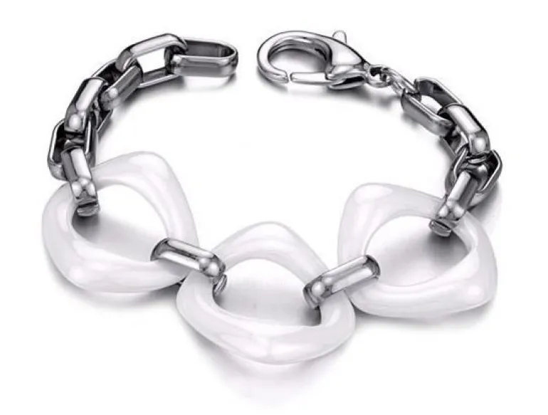 Lækkert armbånd med keramiske charms og stærk kæde i 316L rustfri stål.