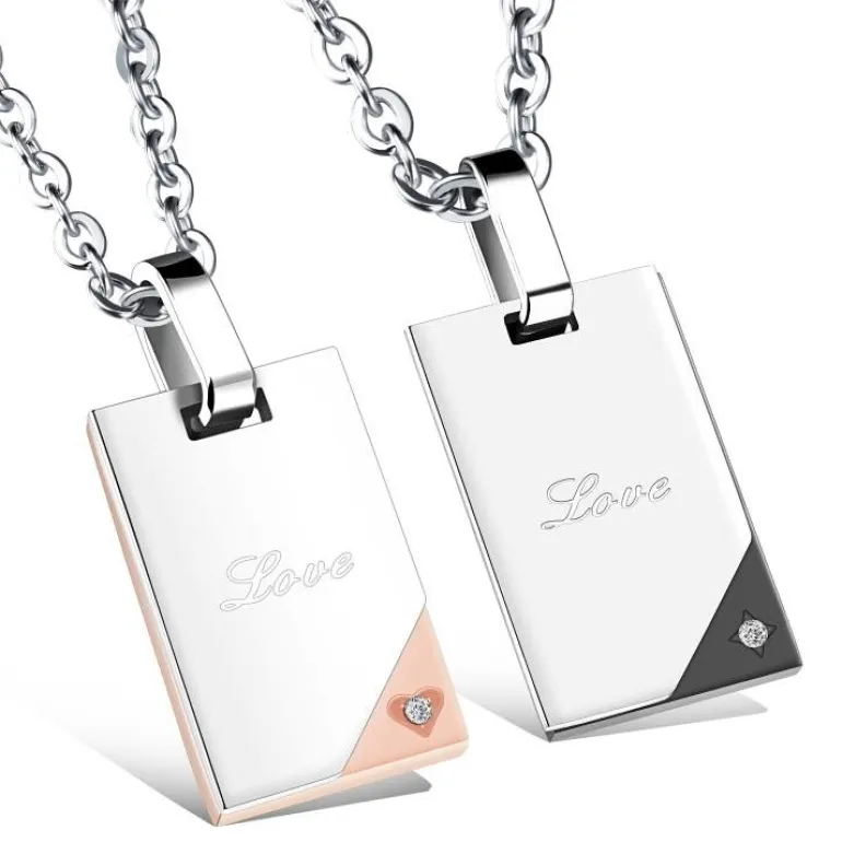 316L rustfri nikkelfri stål til ham og hende – Disse parsmykker danner en samhørighed imellem par, forlovede, veninder og kærester. 2 stålplader udgør de flotte vedhæng med indfattet zirkon perle.