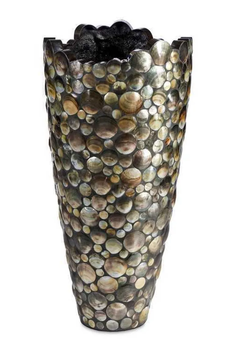 Fantastisk høj indendørs krukke med rustfri stålkant med black lip østersskaller – 2 størrelser