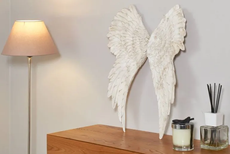 Sæt med 2 stk beige eller gyldne englevinger til væggen – smuk dekoration lavet i polyresin som skaber en helt speciel stemning.