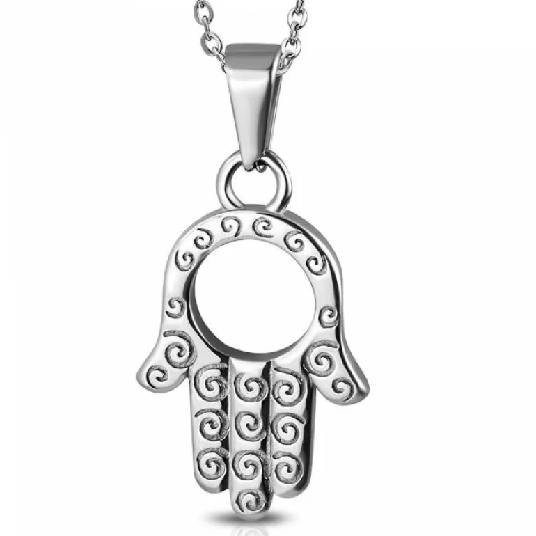 Fatimas hånd / Hamsa smykkevedhæng i rustfri stål