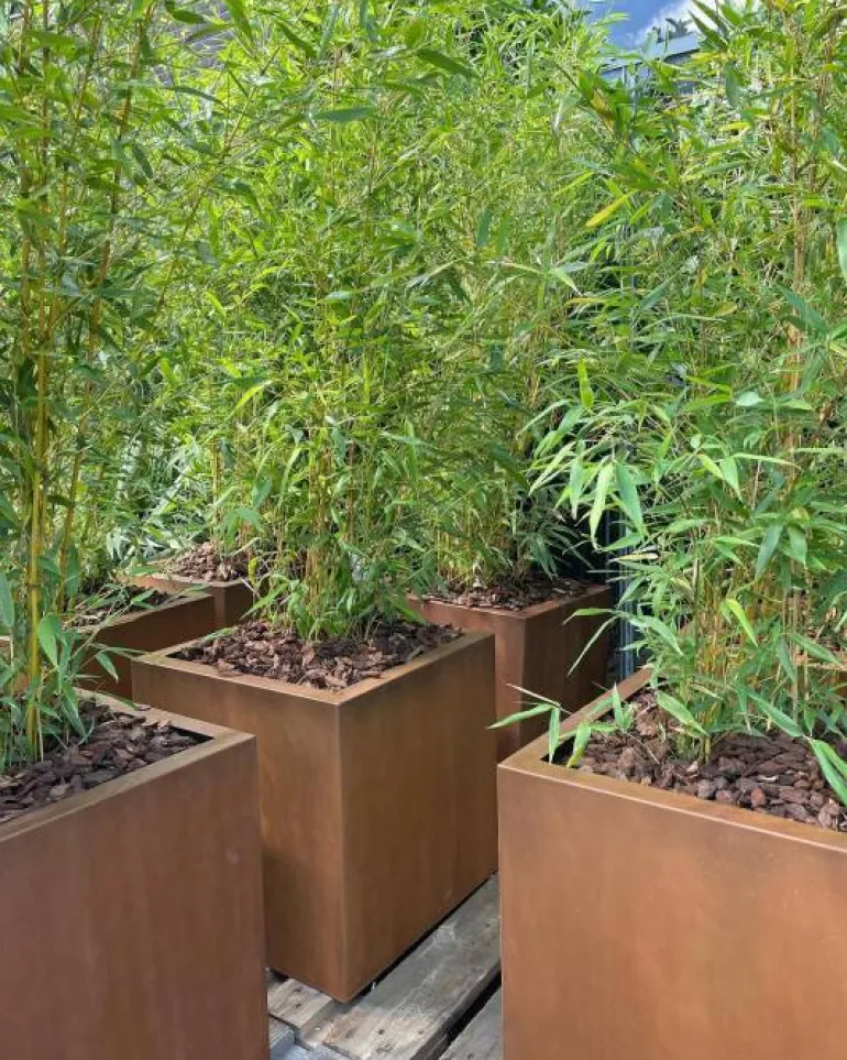 Firkantede kubiske udendørs krukker i 2mm cortenstål