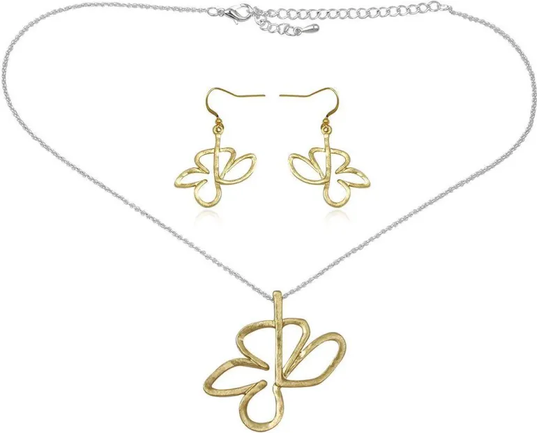 Golden flower smykkesæt med øreringe, halskæde og vedhæng
