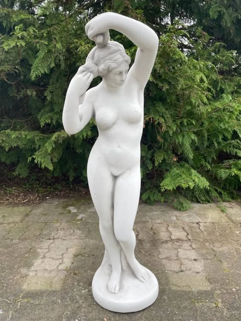 Sensuel havefigur “skønhed” i hvid frostsikker beton – 120cm uden sokkel – 158cm med sokkel.
