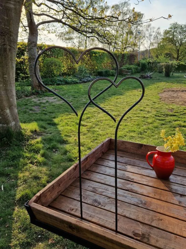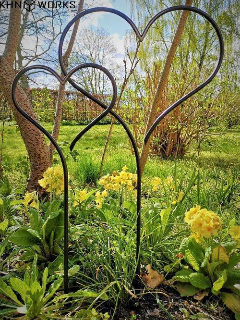 Hjerter med spyd i bukket jern til have og krukker