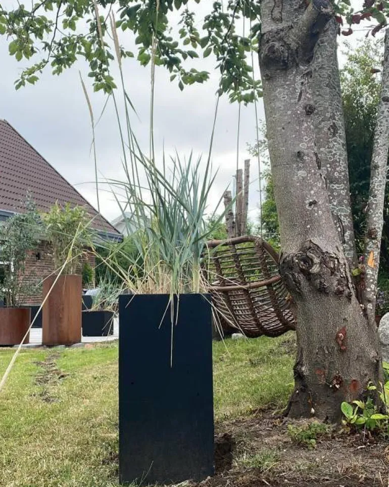 Sort eller grå – kube krukker i frostsikker glasfiber / fiberstone.