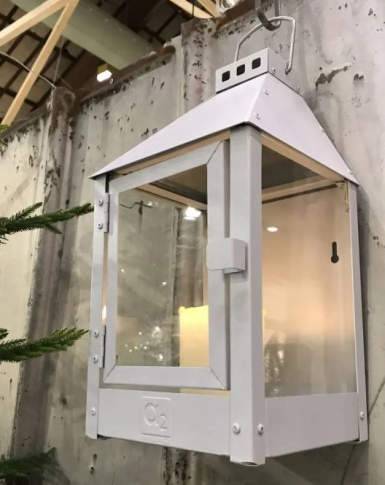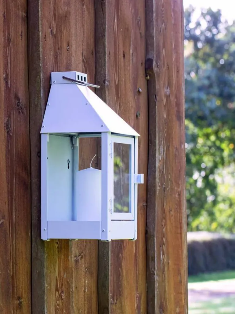 Gå ikke på kompromis ved kvaliteten når du køber – her en hvid galvaniseret og pulverlakeret væglanterne i nordisk dansk design.
