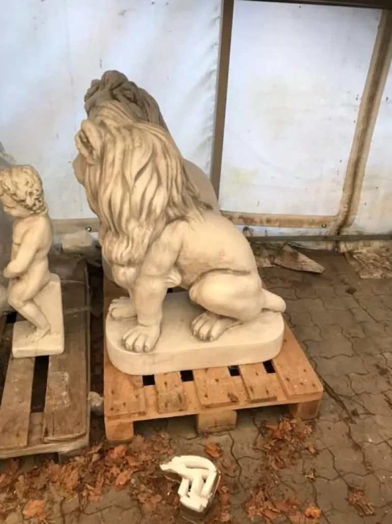 Hvide løver i beton med skygger