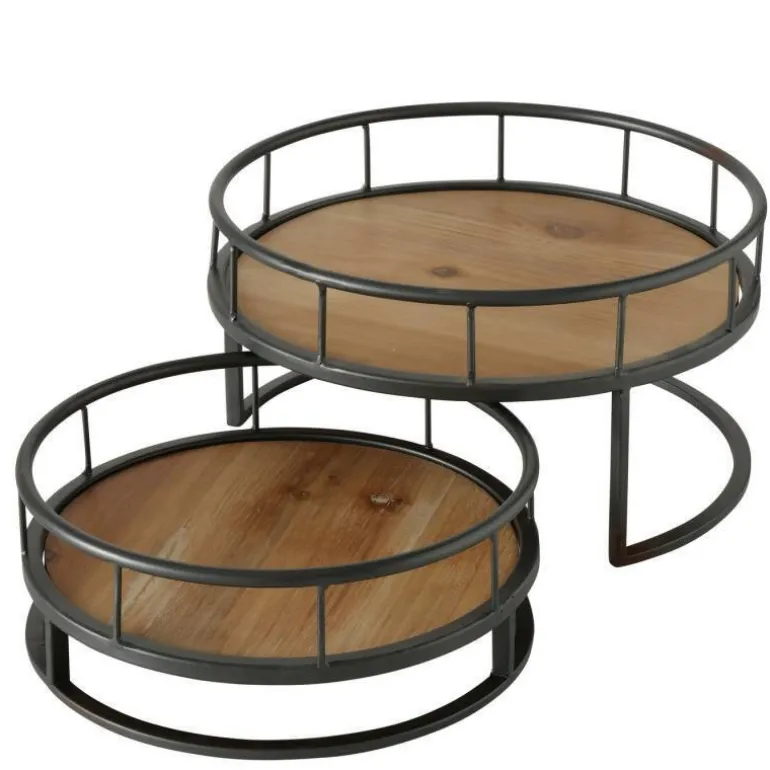Fremstillet med jernbase og træplader. Kan skubbes sammen så de ikke fylder meget. Sættet består af 2 separate fade.