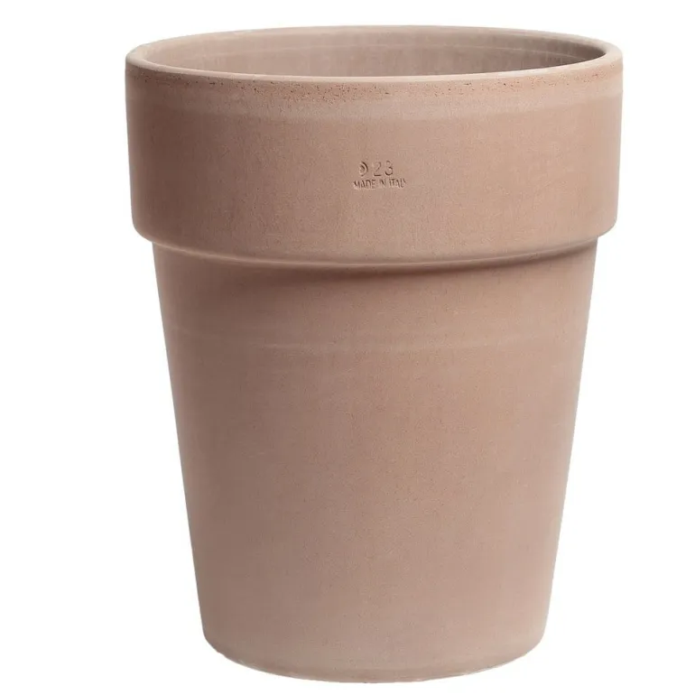 Klassisk smuk rund og let konisk krukke i Italiensk Terracotta – krukken er frostsikker hvis du starter med 1/3 Lecanødder i bunden og hæver dem lidt fra jorden inden vinter. Disse Krukker leveres med bundhul og i en super kvalitet. (Evt underskål skal fjernes om vinteren)