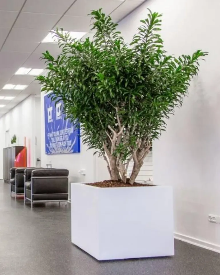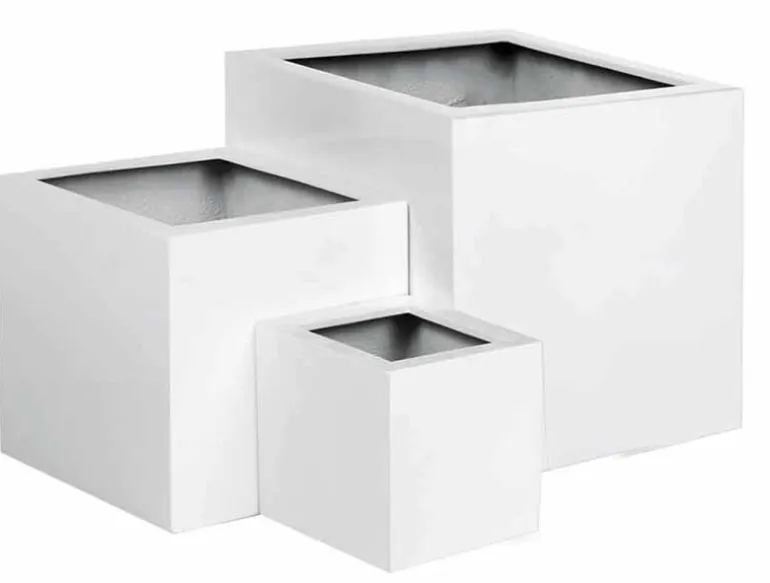 Krukker i højglans sort eller hvid glasfiber til de lidt større planter. Leveres med hjul for nem håndtering af plantekrukkerne – anbefales til indendørs anvendelse grundet den specielle lakering.