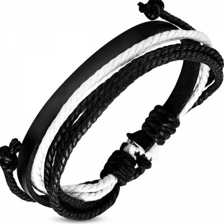 Flot billigt armbånd med sort læder og hampesnore – Kan justeres så det passer perfekt til dit håndled.