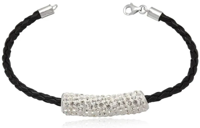 Smukt enkelt armbånd i sort læder med krystal rør