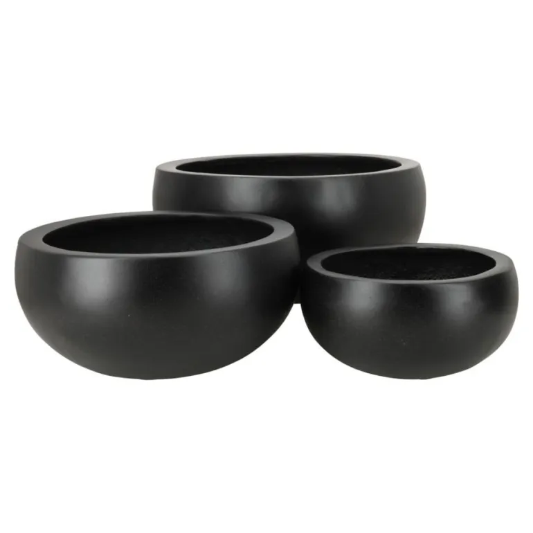Sæt med 3stk frostsikre lave sorte plantekrukker i glasfiber – 5 års garanti
