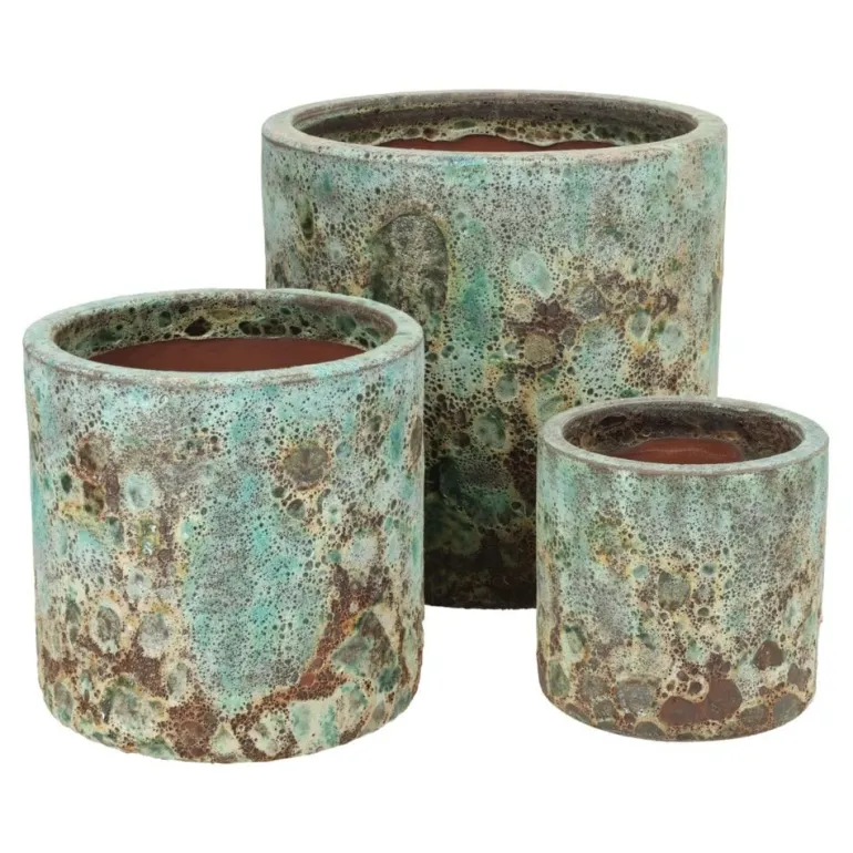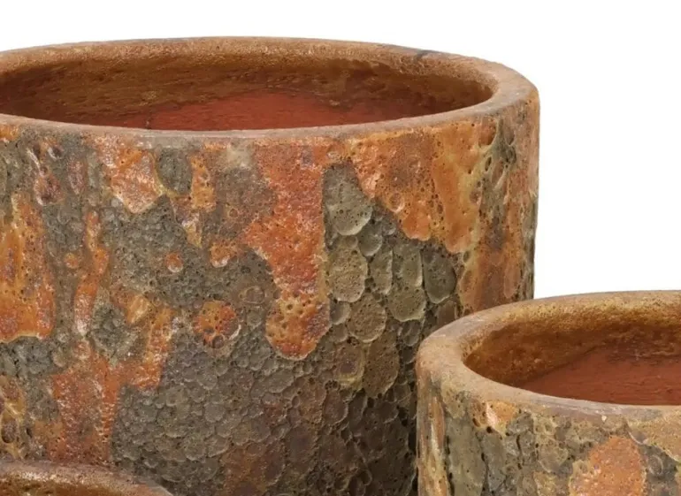 Ø.20 + Ø.28 + Ø.38cm keramik krukker med lava look i rust eller grøn jade twist