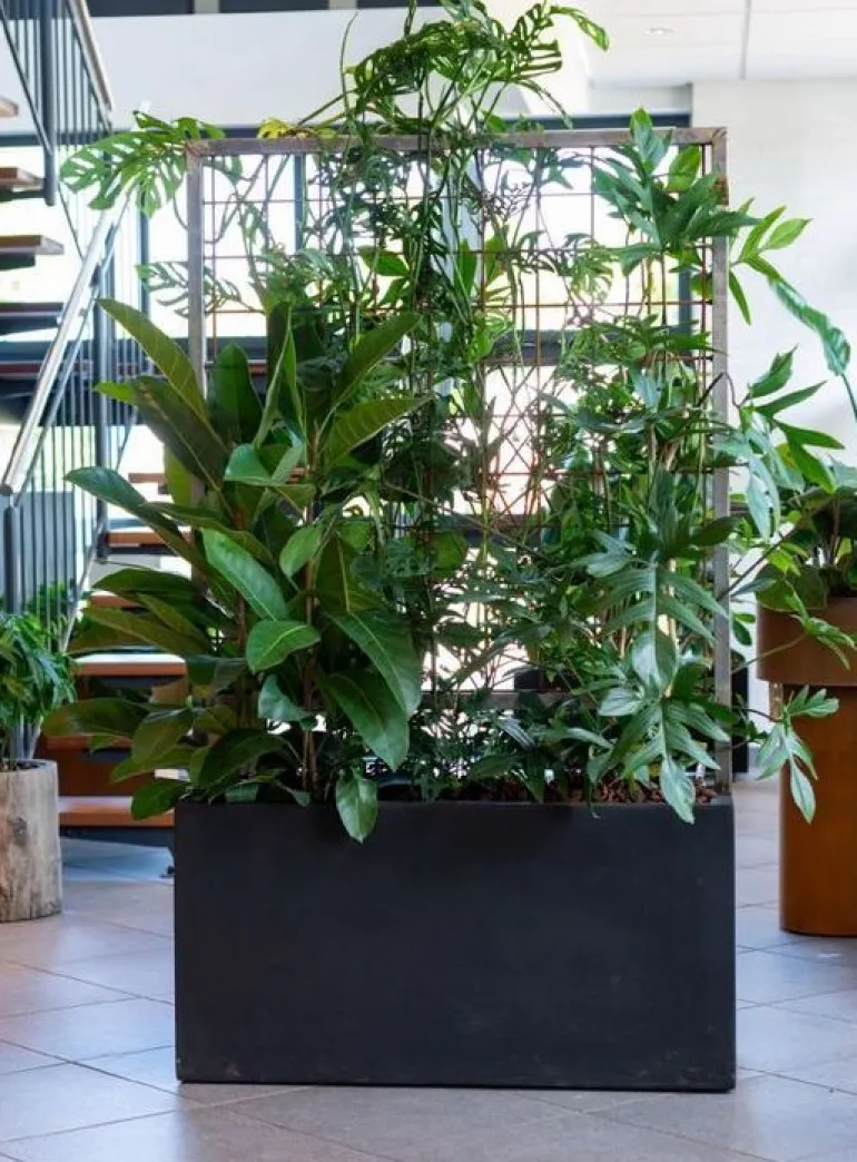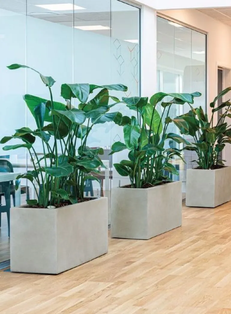 Vandtæt indendørs plantekumme i sort eller sandgrå fiberstone glasfiber.