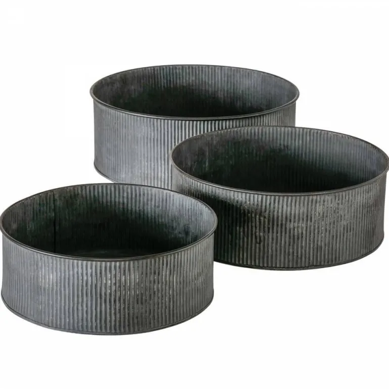 Ø.25 + 28 + 30cm runde lave Bionda plantepotter i zink metal