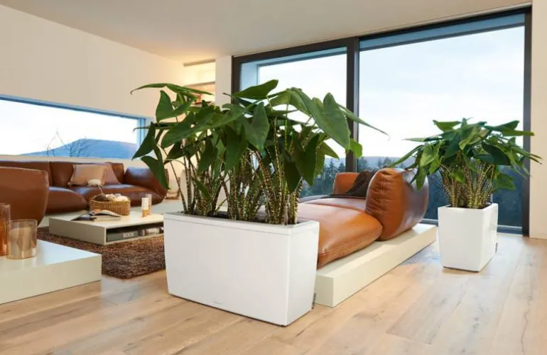 Her er løsningen hvis du leder efter en fleksibel og smart løsning med flytbare planter og blomster. Plantekummen leveres med skjulte hjul, så du let kan flytte den ved rengøring. Desuden kommer den med selvvanding så du bare skal fylde vand på, når vandmåleren siger det. En rigtig elegant og nem måde at få flotte planter i boligen eller udestuen – vanddepot op til 10 uger.