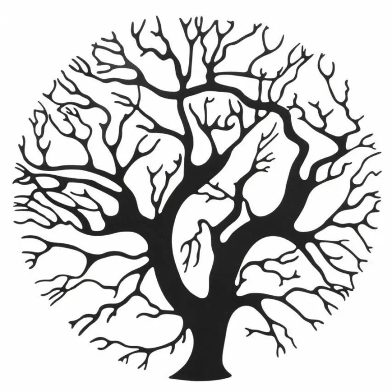 Speciel og dekorativ vægdekoration med livets træ i powdercoated metal – Ø.38cm