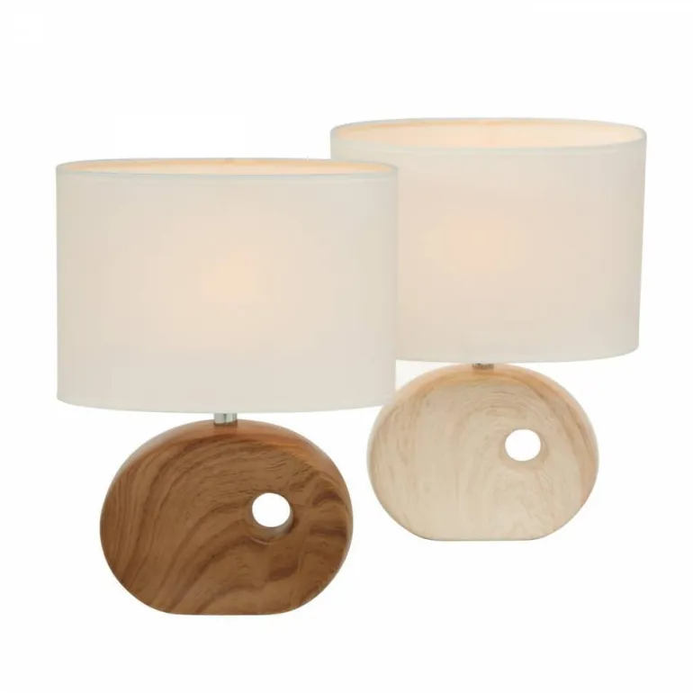 Her er en bordlampe som også er perfekt i vindueskarmen, da den hvide skærm er smal aflang. Fremstillet med base i keramik med en overfladebehandling i trælook.