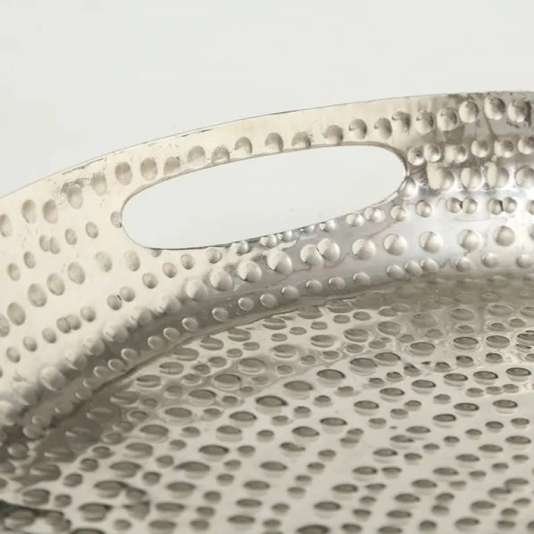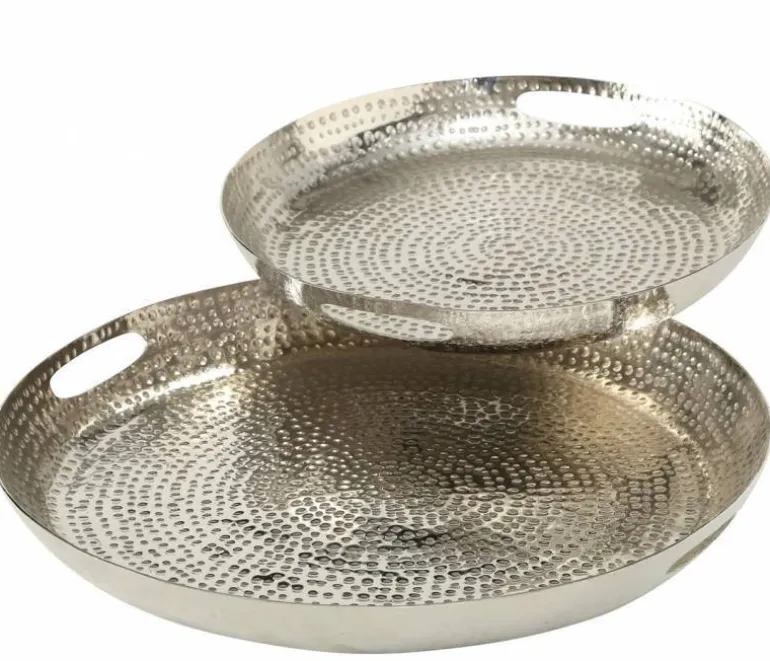 Flotte orientalske fade / serveringsfade med håndtag og banket mønster / silver/alu – Ø.40+Ø.50