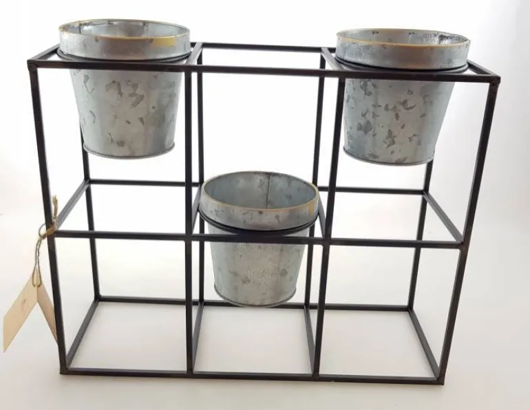 Super smart stativ i sort metal med små zink potter til f,eks krydderurter i køkkenvinduet. Enkel og flot system som samler dine planter på ét sted.