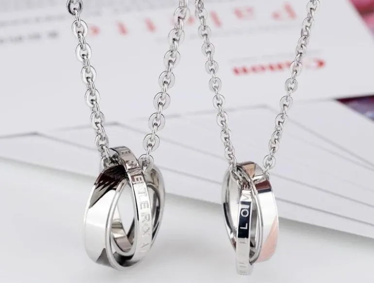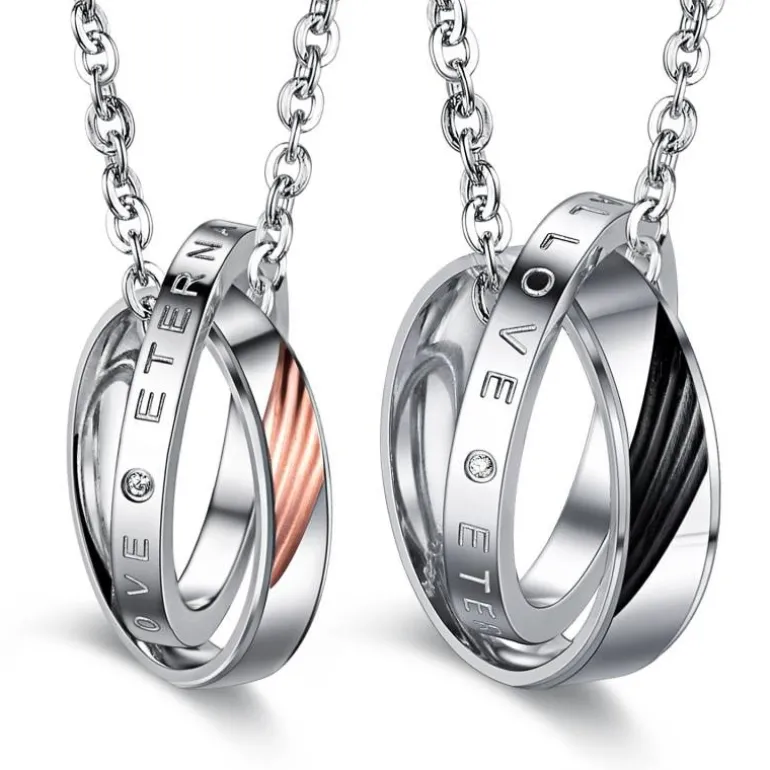 Lækkert sæt halskæder med super flotte vedhæng i rustfri nikkelfri stål med indfattede zirkon perler – Flot måde at viser omgivelserne at i hører sammen.